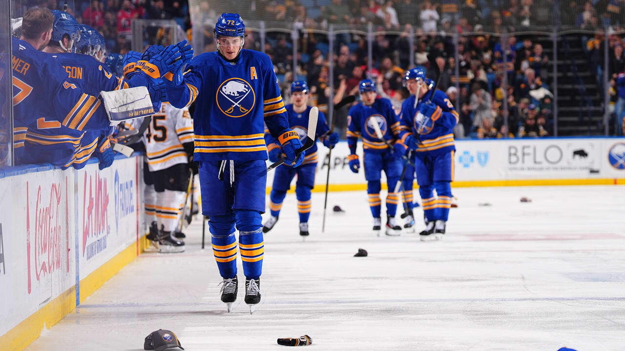 Tage Thompson grabs the hat trick against the Bruins in the 3rd period and extends the Sabres lead, 4-1