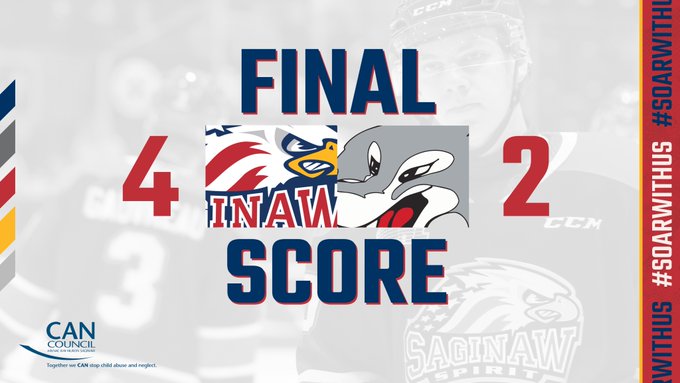 Saginaw scored four goals in the third period, started by Luke McNamara early in the third period. With the win tonight, the Spirit have swept the two-game season series against the Wolves.