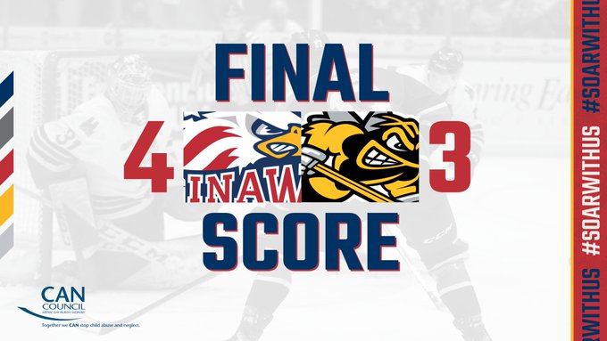 The Spirit win the game 4-3 after the shorthanded overtime goal. Saginaw improves to 10-6-1-0 on the season.