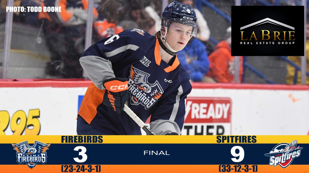 The Firebirds dropped their second straight game, this time against first-place Spitfires. Three different Firebirds recorded multi-point nights, Tyler Deline recorded two assists while Braeden Kressler and Ethan Hay each tallied a goal and an assist. Alex Christopoulos netted a hat trick for the Spits, and Brett Harrison led all skaters with five points to his night (2 G, 3 A). Ryan Abraham and Matthew Maggio each recorded 3 helpers. Nathan Day got the nod for the Birds, stopping 35 of 44 shots. Joey Costanzo started for the Spitfires, stopping 38 of 41 shots and earning his 18th win on the season.