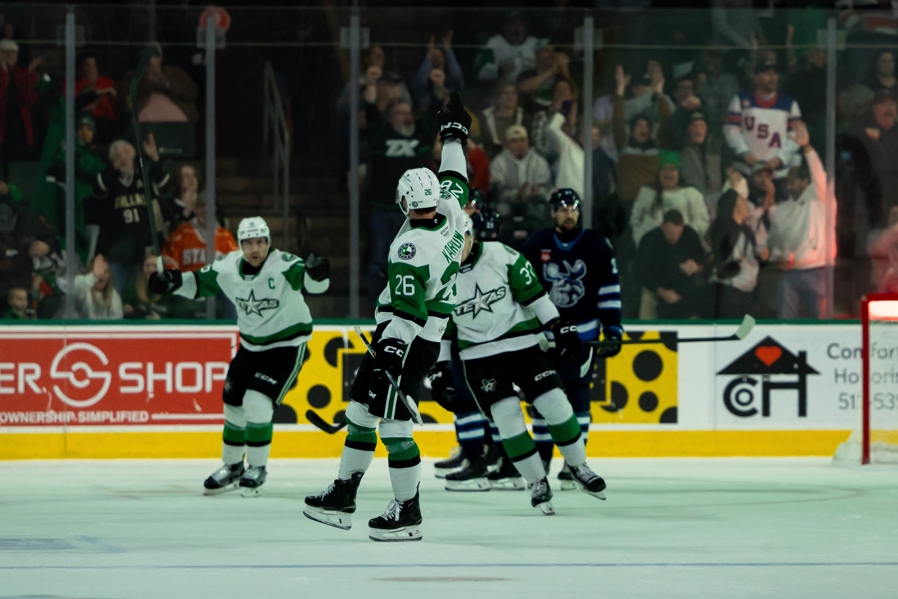 CEDAR PARK, Texas – The Texas Stars, American Hockey League affiliate of the NHL’s Dallas Stars, defeated the Manitoba Moose 4-3 Saturday at the H-E-B Center at Cedar Park in dramatic fashion, with three goals in the third period to complete their seventh victory in a row.