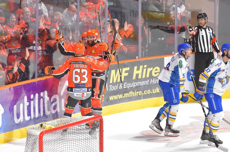 In truth, the game was effectively over inside the opening 11 minutes with the Steelers putting three into Shane Owen’s net before the visitors had found their feet. Matt Petgrave had the hosts ahead with 1:42 gone when he got onto a loose puck from the stick of Mikko Juusola and fired high past Owen. A little under seven minutes later, Juusola himself took a Niklas Nevalainen pass in the slot and pick his spot to fire into the Flyers net. The Finn struck again at 10:50 to put the Steelers in complete control.