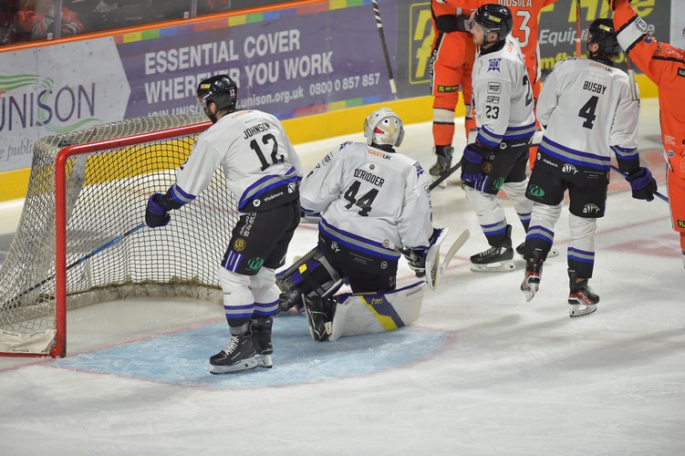 Sheffield opened the scoring after a brief delay for ice repairs. Mitchell Heard reacted quickest to a loose puck, batting it past Drew DeRidder after Kevin Tansey’s shot created the chance. The hosts doubled their lead on the powerplay while Harrison Cairns sat for slashing, with Mikko Juusola finding Derek Gentile alone at the back post for a tap-in.