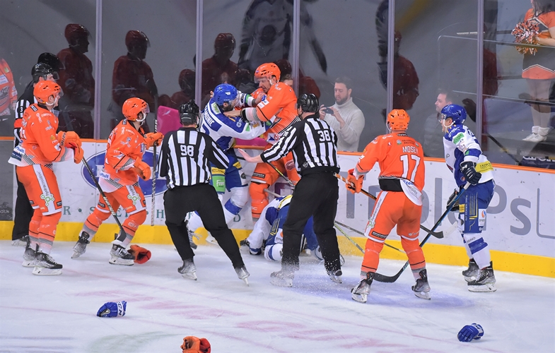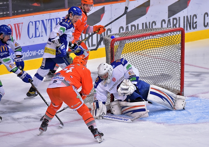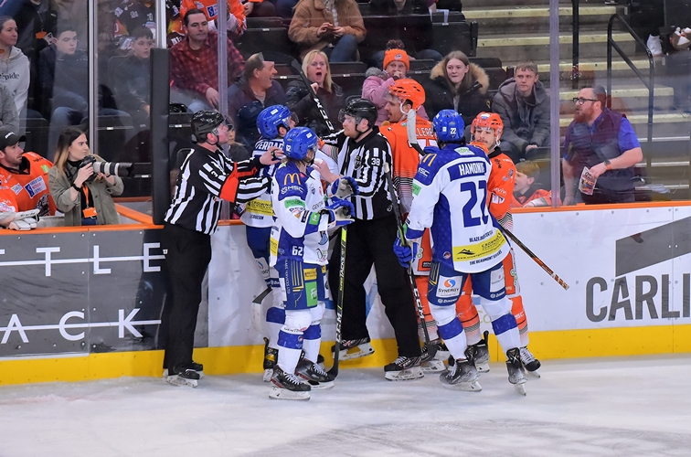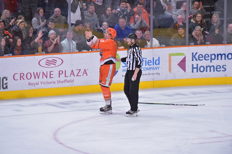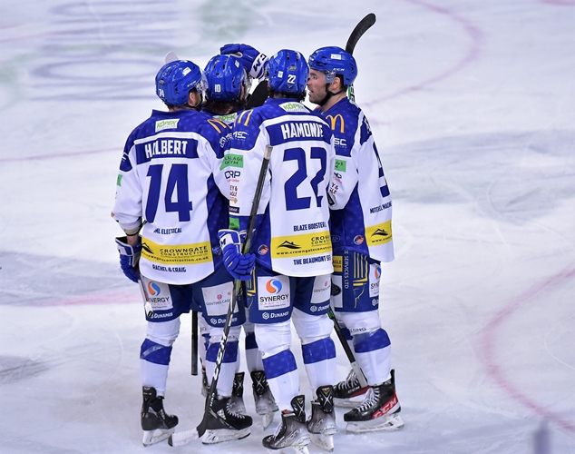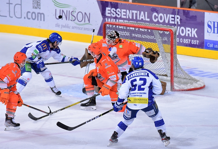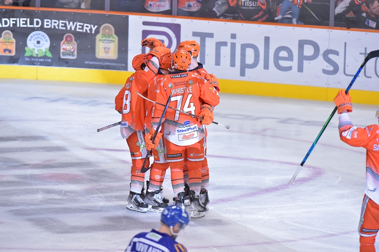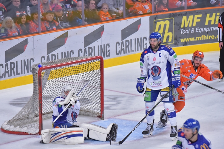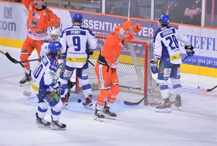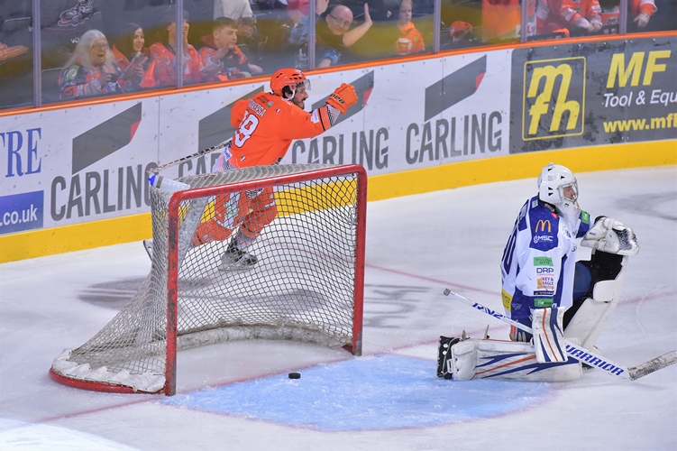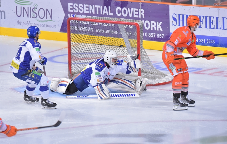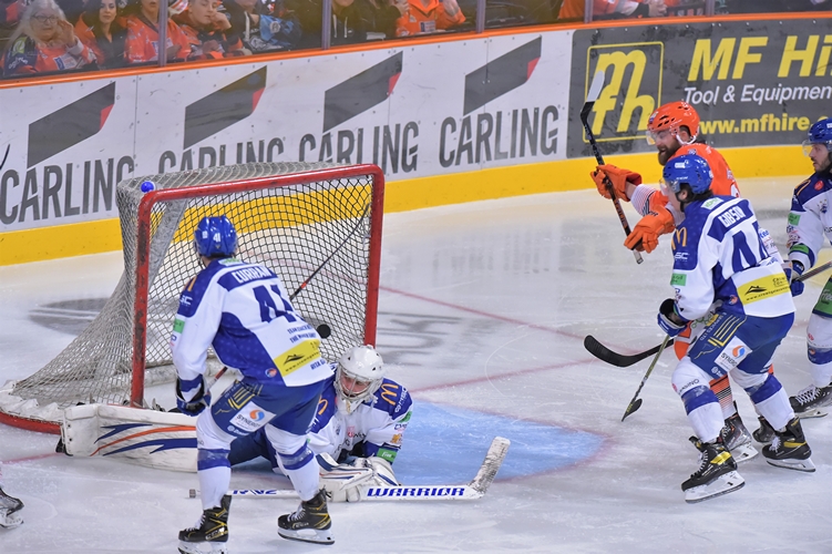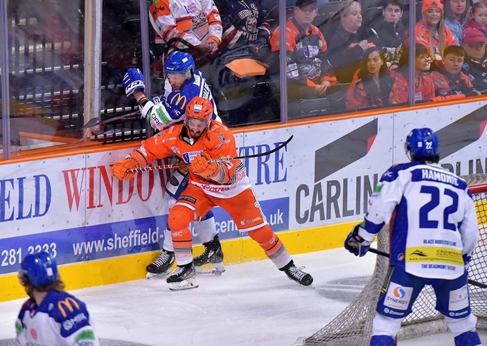 Justin Hodgman put the home side into their first lead of the game on a loose puck at 43:48, with Brandon Whistle making it 4-2 at 49:54 with a tip on Sam Jones’ shot. Kevin Schulze’s low wrist-shot form the slot with 3:29 to go made things safe for the Steelers, although Sam Russell grabbed his first ever EIHL goal with 15 seconds remaining for the Blaze. The aftermath of his goal was somewhat spoiled by an unnecessary brawl involving Keaton Ellerby and Alec Marsh.