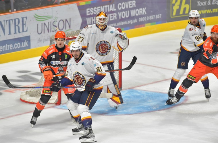 Guildford came close to levelling at the start of the second, and had a goal chalked off for a high stick, but did tie things up when Lewis Hook’s pass found Ethan Strang at Matt Greenfield’s far post to net at 27:50.