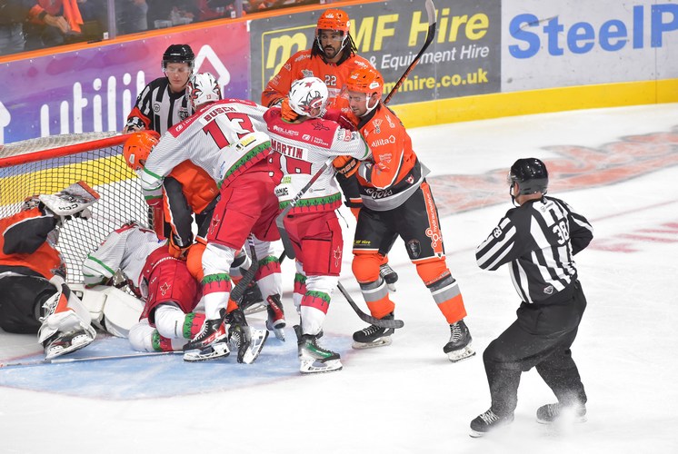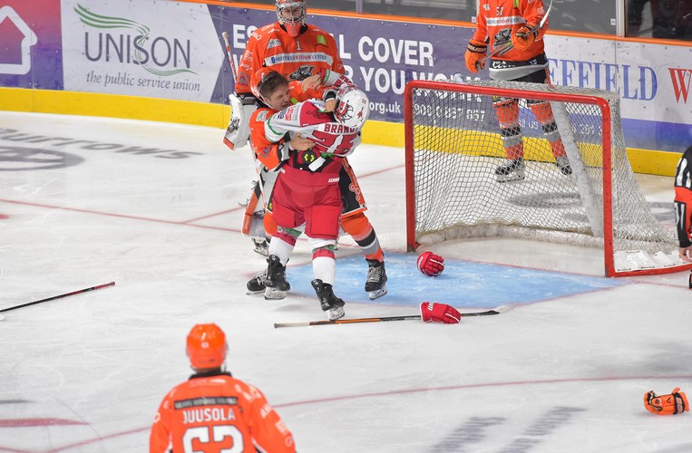 An exchange of penalties at 28.26 when Devils Ryan Barrow (roughing) was joined in the penalty box by Steelers Mitchell Balmas (high sticks)