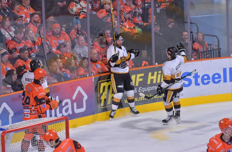 Jonathan Phillips fed Matt Petgrace whose pass to Sebastien Piche was met with his trademark bullet of a slap shot to put The Steelers ahead 2-1 at 43.15