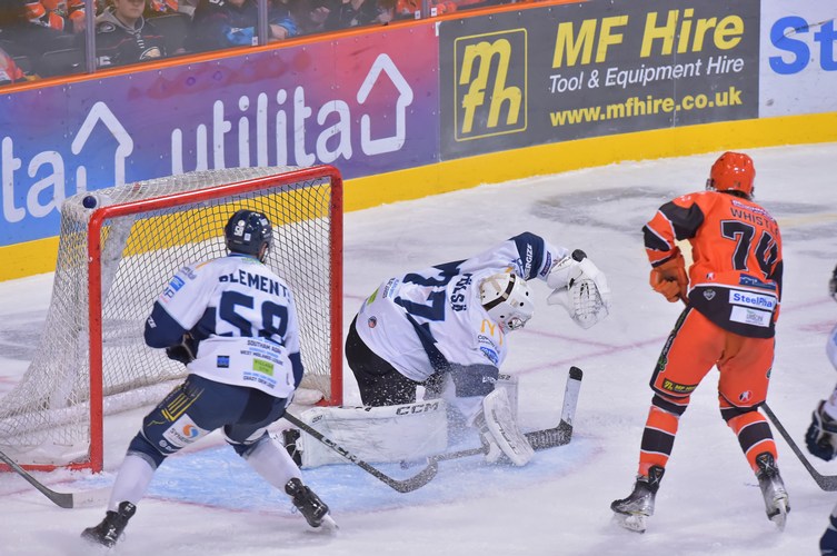 That was all change at the start of period two where the Blaze were on the front foot. A couple of scrambles for the puck around the net saw the home side grateful to Matt Greenfield for managing to freeze the puck in the nick of time. Martin Látal opened the scoring at 29:44 to put the home side ahead, but Greenfield was there to keep the Steelers ahead with an excellent pad save on a Blaze powerplay.
