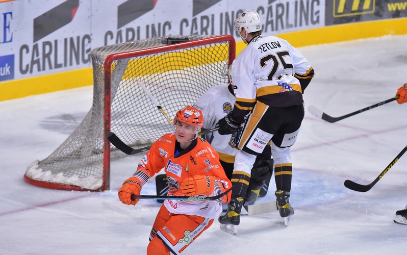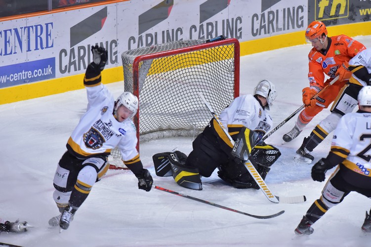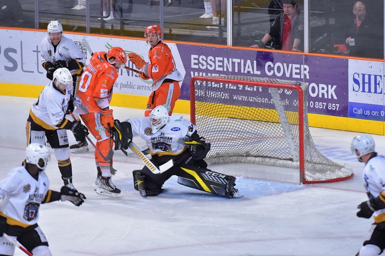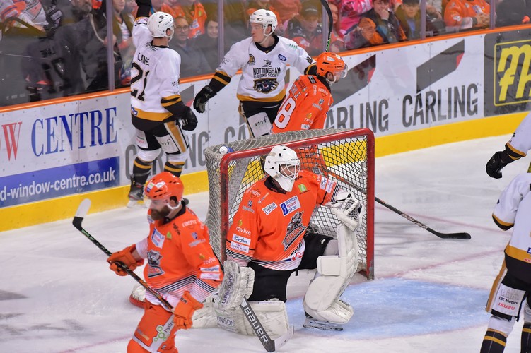 However, Nottingham played their way back into things in period two and ended the period level. A speculative effort from Matt Lane was somehow deflected into the net by Steelers’ goalie Rok StojanoviÄŤ as he attempted to deflect it out of harm’s way. at 28:37. With 5:53 left in the period, Lane fired quickly off Jeremy Welsh’s feed from the corner to tie the game with his second of the night.