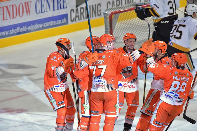 The majority of the 8,462 breathed a huge sigh of releif when the Steelers went back ahead 3:06 into period three. An excellent pass in front from Vojta Polák set up the on-rushing Davey Phillips for the far-post finish to make it 3-2. A little over ten minutes later, a missed chance by Matthew Myers at one end was punished by Evan Mosey at the other and the Steelers were back two in front.