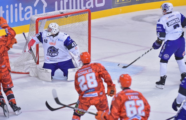 There was a worrying moment later in the period as Clan netminder, John Muse took a slapshot from Martin Latal up high in the throat area and needed some attention from the medical staff but it was good to see him rise and continue playing on.