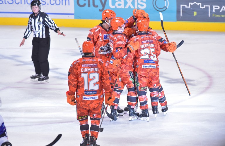 The Steelers then made the perfect start to the game as McNally put the Steelers one goal up with only 19 seconds on the clock. He skated in from the right wing, played a nice one-two with Raska and beat Muse. Piche with the second assist.