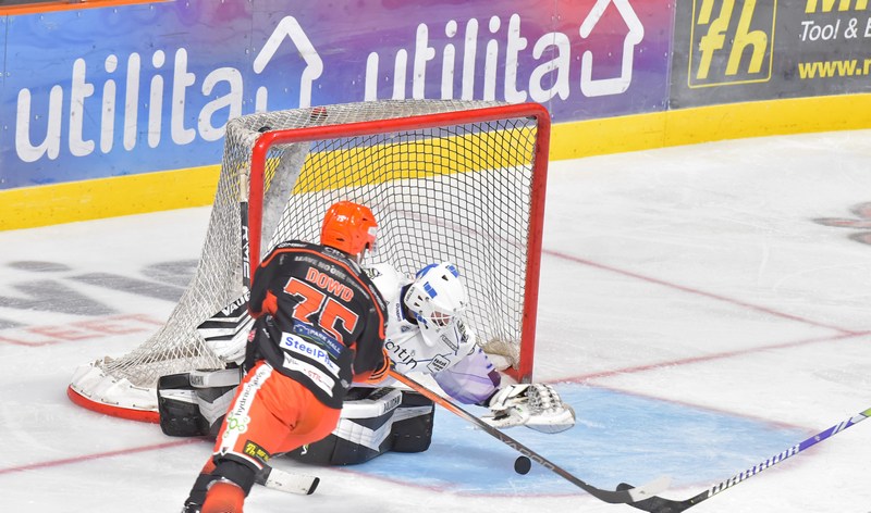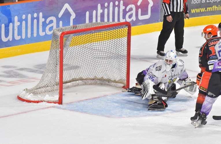 Steelers were still in control of the game but failing to convert their chances, then with just 16 seconds remaining in the second period, Captain Robert Dowd pounced to equalise (1-1)