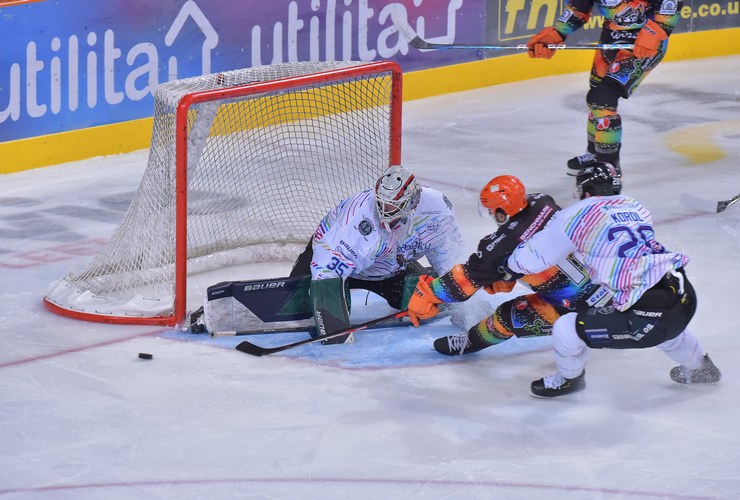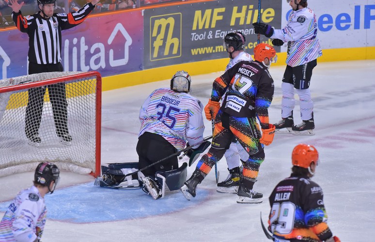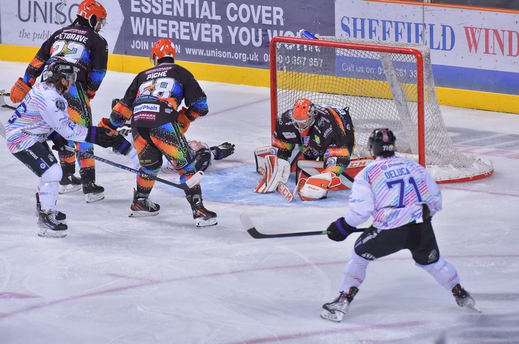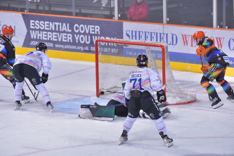 The British forward then doubled the Steelers’ lead 3:47 into period two, but at 25:25 former Steeler Anthony DeLuca pulled the Storm back to within one. Steelers Head Coach Aaron Fox challenged Goaltender Interference on the play, but the goal was upheld after video review, and the Steelers given a bench minor.