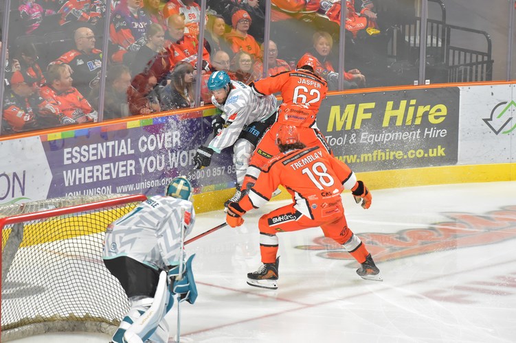 The Giants came out strong to start the third period but were denied repeatedly by Matt Greenfield, and the hosts struck again to seal the game. Ryan Tait lifted the puck home after excellent work from Derek Gentile with 11 and a half minutes to play to make it 4-1.