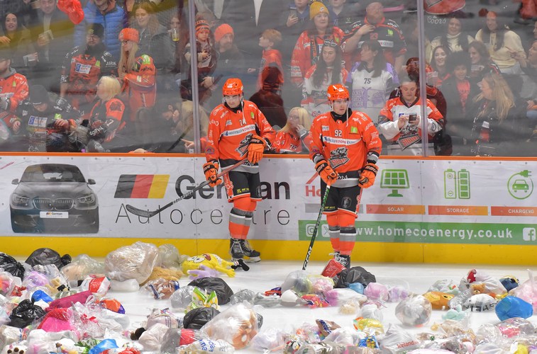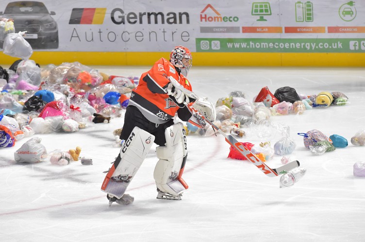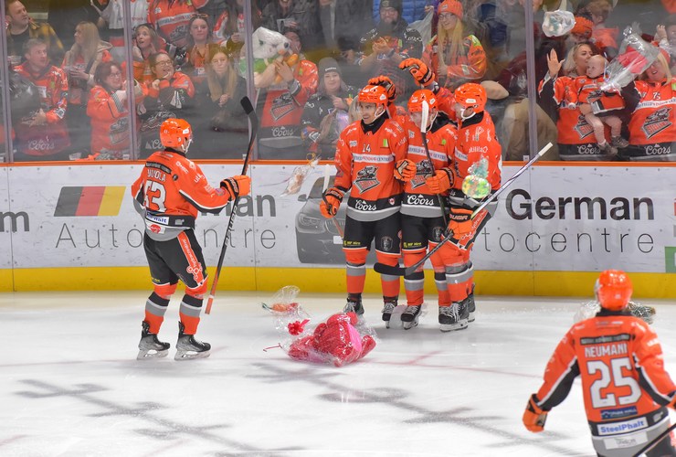 Two goals in the opening four minutes looked to have put the Steelers in complete control of this game, but good resilience from the Flyers saw things all tied after 20 minutes. Patrick Walting’s wrist shot beat Shane Owen with 121 seconds played, leading to thousands of bears to be thrown onto the ice. At 3:46, Dominic Cormier shot deflected off Colin Shirley’s face and past his own goalie into the net. The Steelers could have been further ahead but were pegged back to 2-1 by Anthon Eriksson coming in unchecked in the slot and converting a neat reverse pass from Max Humitz. After the home side missed a couple of excellent chances on a Sean Giles Hooking minor, Lucas Chiodo was also untracked in the offensive zone and beat Matt Greenfield high off Shirley’s pass to tie the game at 16:25.
