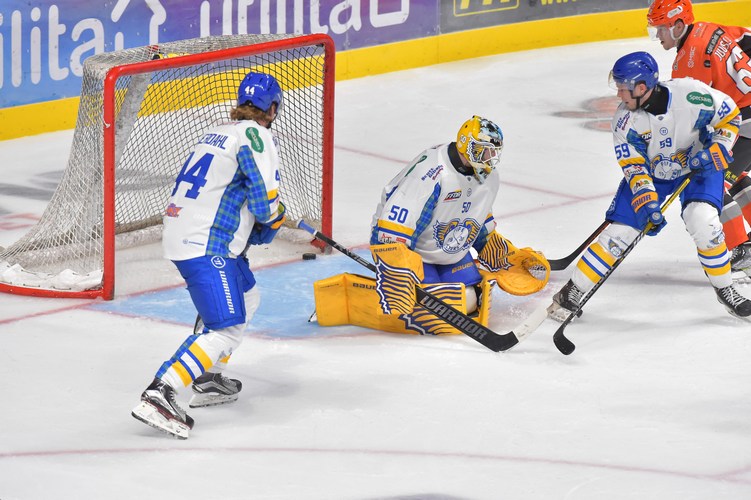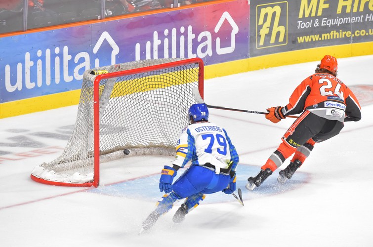 Fife shocked the home crowd by taking the lead early in period two through a big slapshot from Vitalijs Pavlovs that beat Greenfield five-hole to quieten the arena, and it was a key stick lift by the Latvian that stopped Brandon Whistle tying the game a couple of shifts later.. Robert Dowd levelled for the hosts just over three minutes later with a shot that deflected behind Owen off Kyle Osterberg’s stick, and then Daniel Ciampini was on hand to poke home a loose puck at 28:58 to put the Steelers back into the lead.