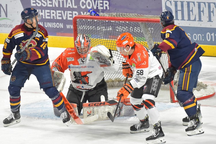 Sheffield pushed for an equaliser early in the final frame, and Mikko Juusola nearly made it happen on the forecheck. His pressure created space for Sam Tremblay in the slot, but his shot sailed just over the crossbar. Five minutes into the period, Matthew Greenfield took a long-range shot off the helmet, forcing a stoppage for running repairs by kitman Andy Akers.