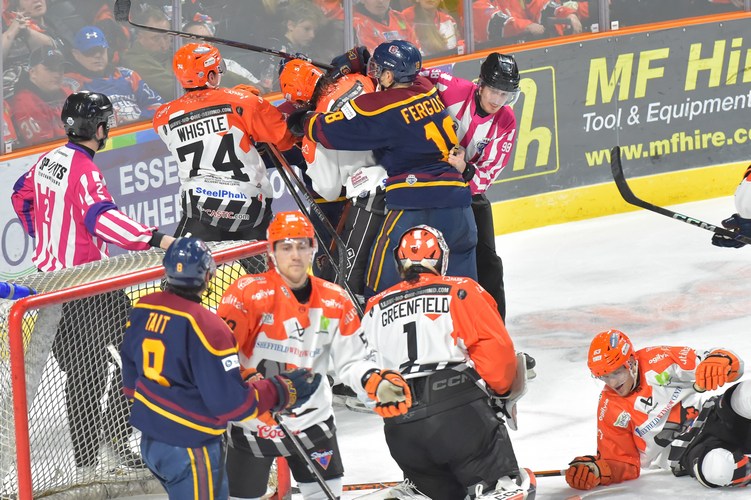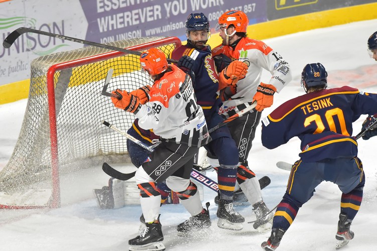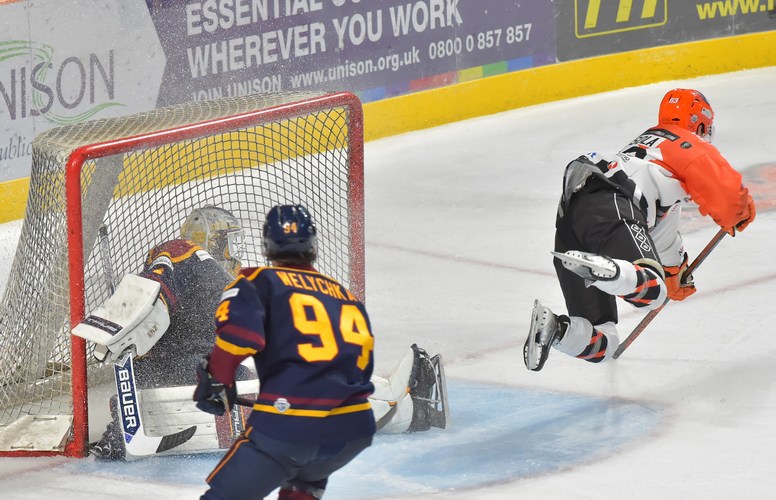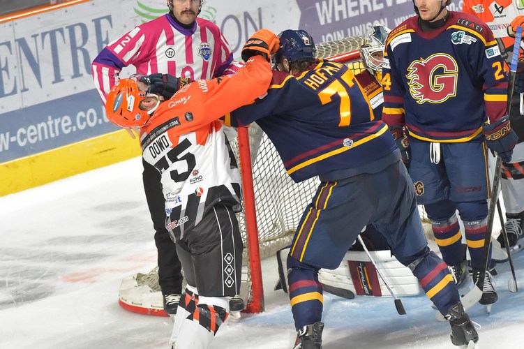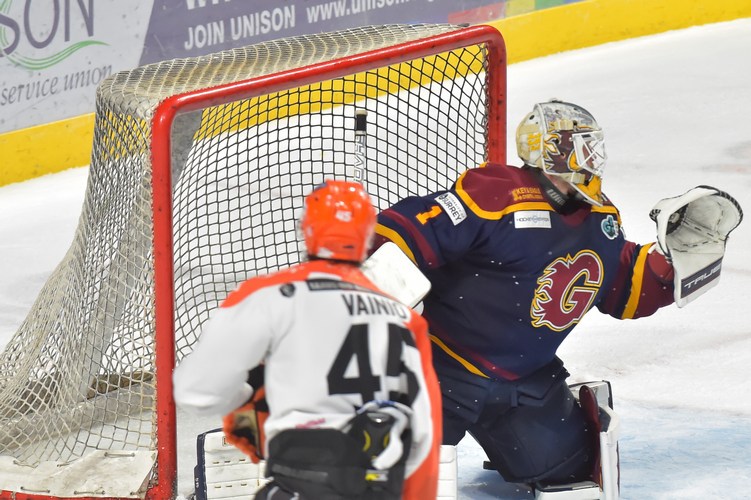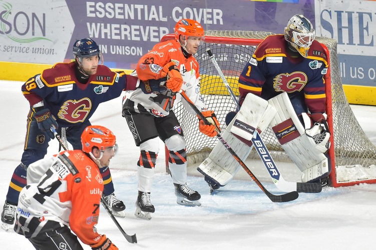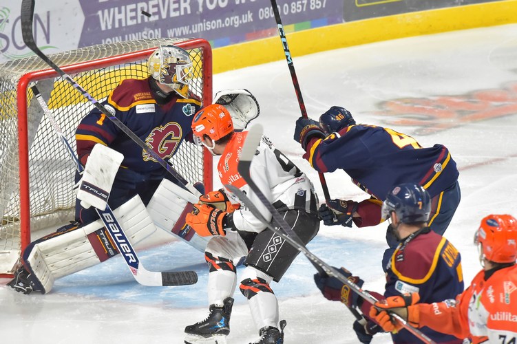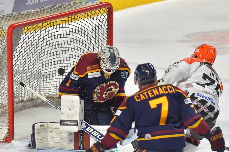 Sheffield kept pressing, with Kevin Tansey dancing through the Flames’ defence before backhanding his shot over the net. Guildford responded moments later as Waller fired a tricky shot at Greenfield from an awkward height, forcing the Steelers netminder to react quickly.