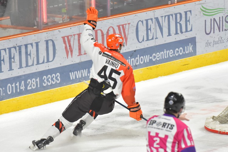 The Sheffield Steelers overcame a late deficit to defeat the Guildford Flames 2-1 in overtime on Retro Night at the Utilita Arena, with Veeti Vainio’s stunning game-winner keeping their title push on track.