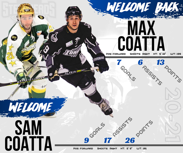 “We couldn’t be happier to have both Coatta brothers join us this upcoming season,” Steelheads Head Coach Everett Sheen said. “Max is an integral part of the culture we pride ourselves on here in Idaho. He is a dedicated, hardworking, and driven individual and we look forward to having him back at Idaho Central Arena this year.”
