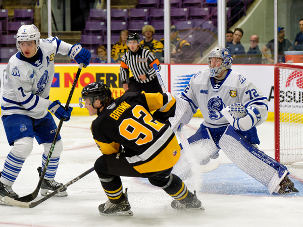 Just under two minutes in, the Trout thought they had the ice breaker when Jack Van Volsen tapped in the rebound, but after a Brantford challenge it was called back for being offside. The Steelheads kept the foot on the gas, outshooting Brantford 8-1 after five.
