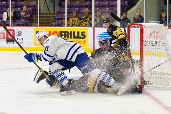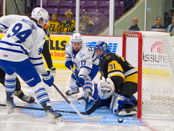 With just under 7 minutes to play Porter Martone broke in on a two on one with Angus MacDonell. Martone waited out the sprawled defender before hitting MacDonell who found the back of the net, to double the lead.