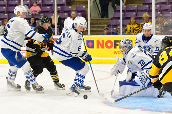 Fresh out of the box Cole Brown broke in on a breakaway, where he was denied by Jack Ivankovic to keep the Bulldogs scoreless.