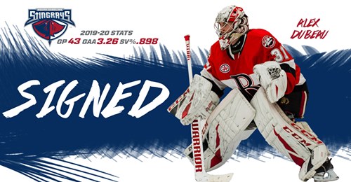 NORTH CHARLESTON, SC – The South Carolina Stingrays, proud ECHL affiliate of the NHL’s Washington Capitals and AHL’s Hershey Bears, have agreed to terms with goaltender Alex Dubeau for the 2020-21 season.