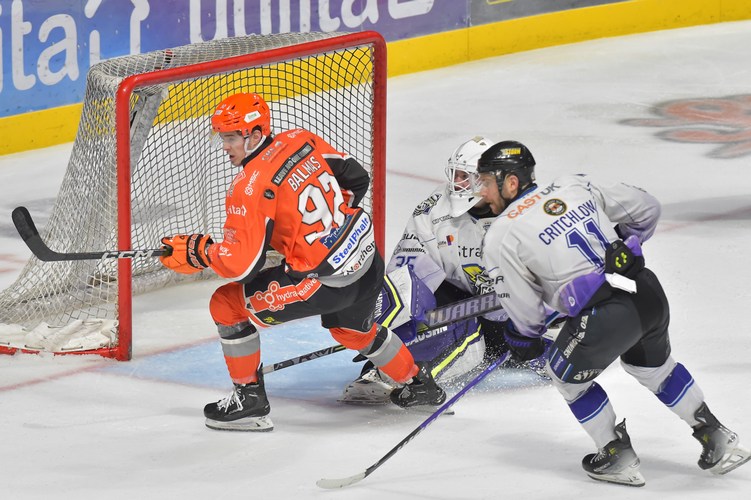 Sam Tremblay put the visitors 4-2 ahead 7:44 into period three to give the league leaders a mountain to climb in the final 12 minutes. Mark Simpson scored shorthanded to reduce the arrears to just one, but despite pulling Matt Greenfield with 2:07 to play the Steelers were to come up short. Critchlow made it two consecutive two-goal games with the empty-netter at 59:19 to confirm Storm’s win.