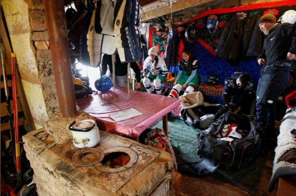 The piece was focused on the first all-female hockey team in Central Asia, but eagle eyed readers noticed a gallery of images from a training session, one of which revealed a locker room with a clay stove, carpets and a fleece throw over the benches.