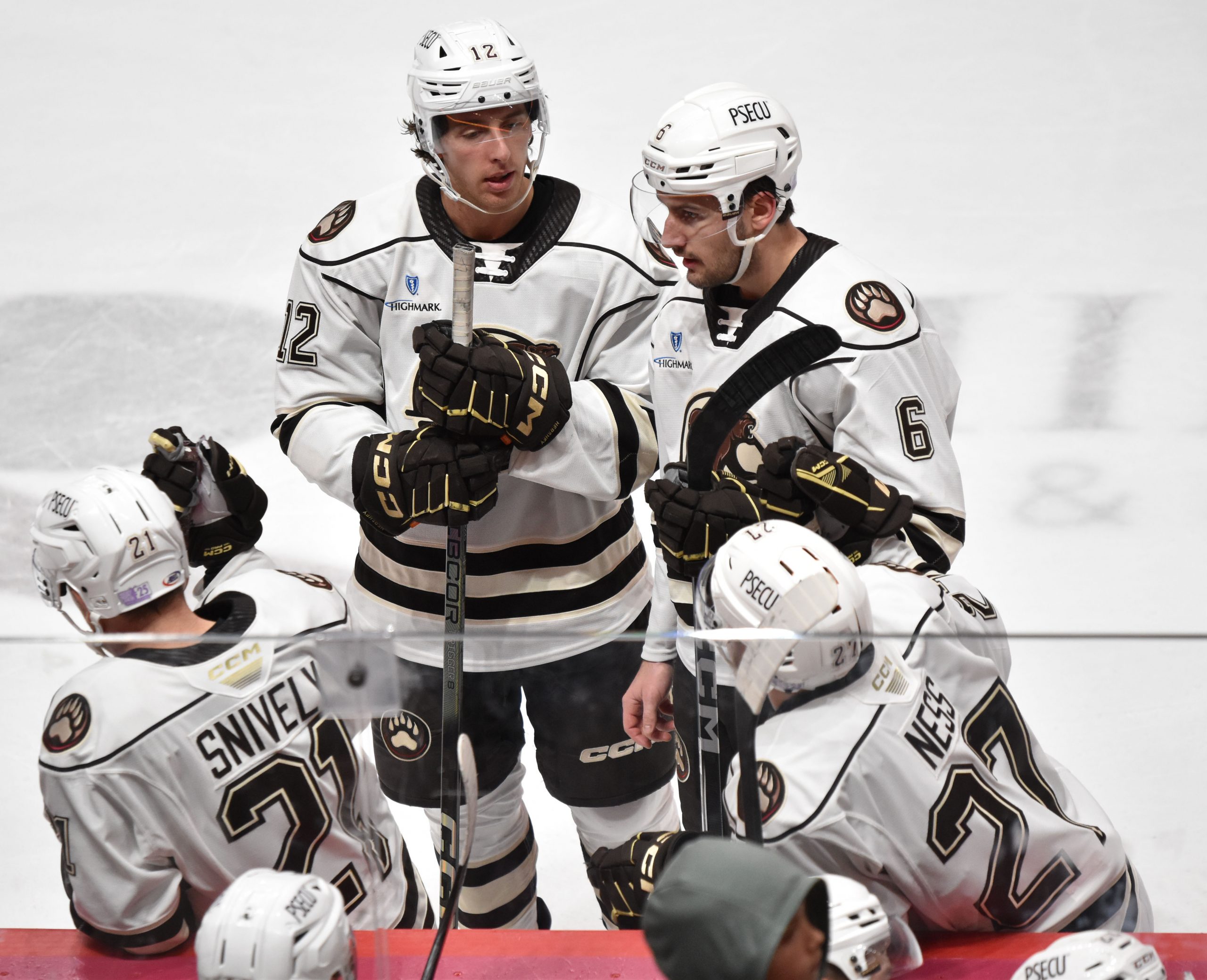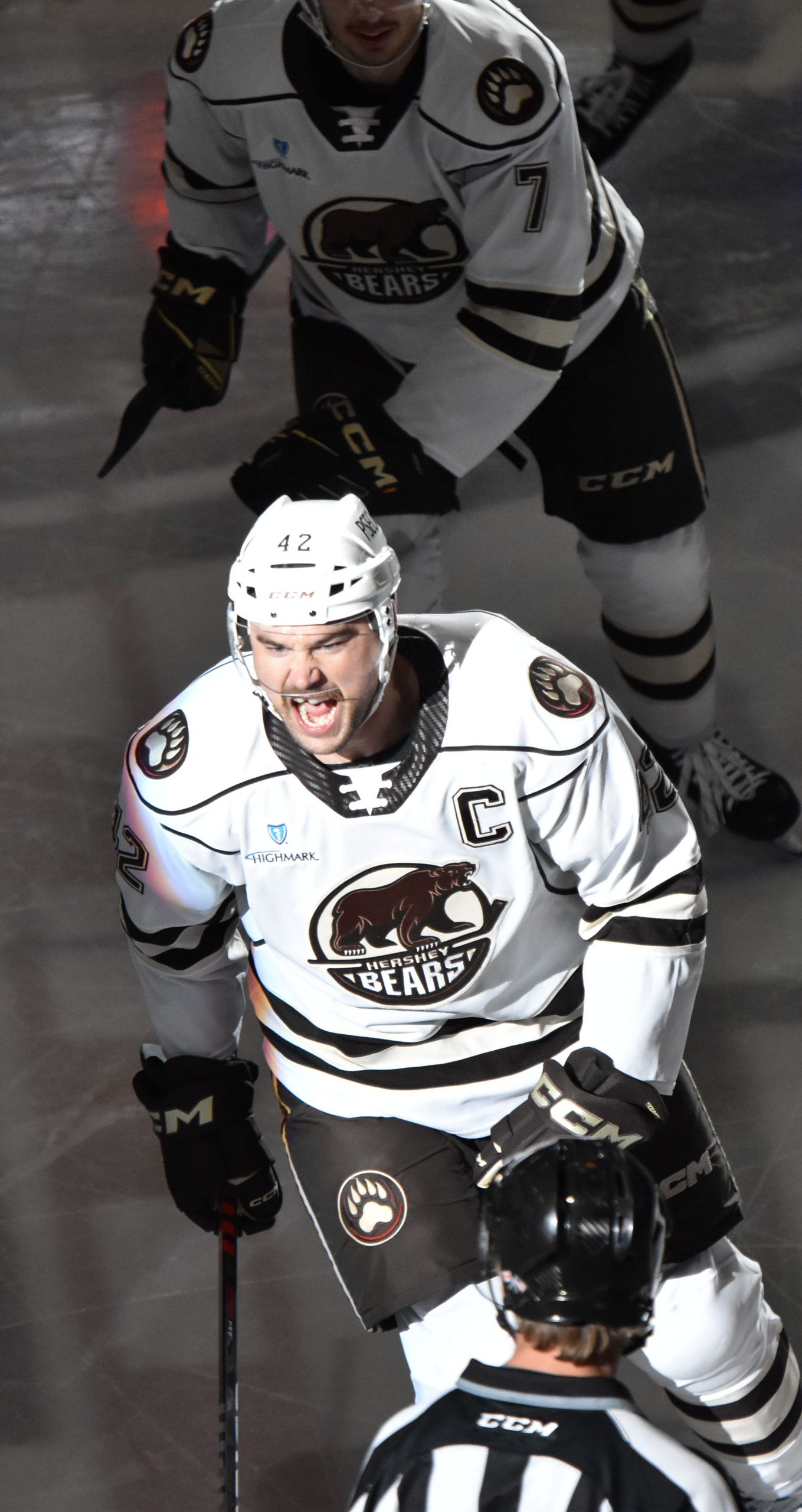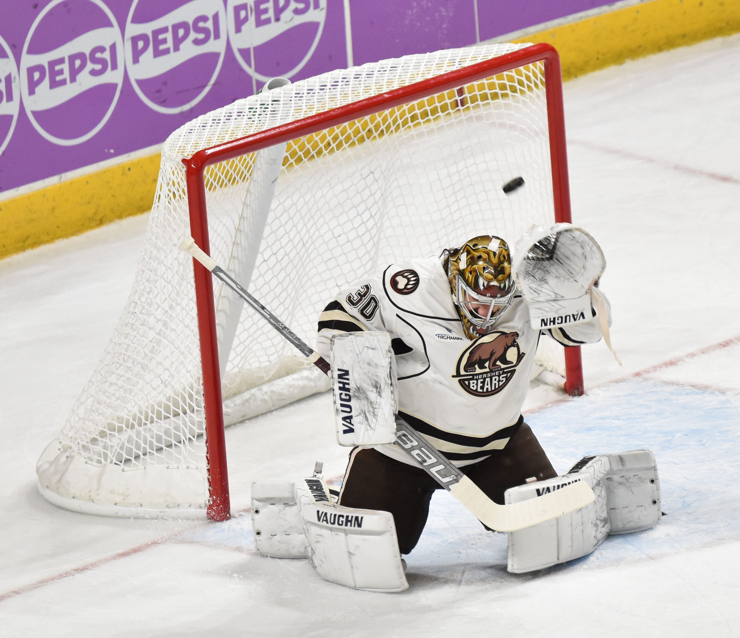 Dylan McIlrath, playing in his first game back with the Bears following his loan by the Washington Capitals, opened the scoring with a shot from the blue line that floated past Joel Blomqvist at 2:46 of the first period. Sutter and Matt Strome earned assists on the goal by Hershey’s captain, his first of the season. For both Sutter and Strome, their assists mutually extended their point streaks to an AHL career-high three games.