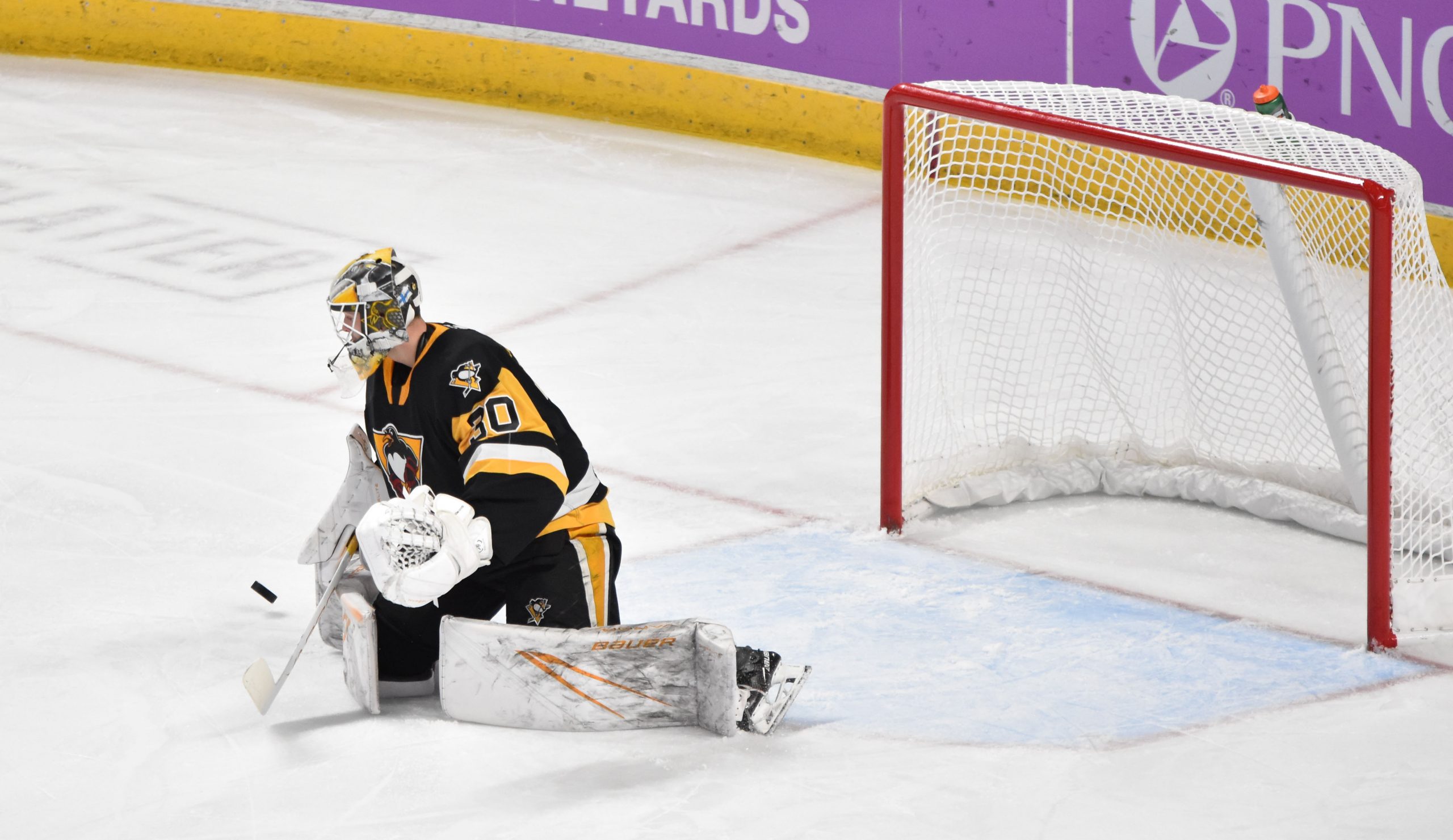 A potential power-play insurance marker by Mike Sgarbossa was negated at 10:42 of the third period after the officials ruled no goal and a subsequent video review could not produce enough evidence for the officials that the puck had crossed the goal line before the net had been dislodged from its moorings.