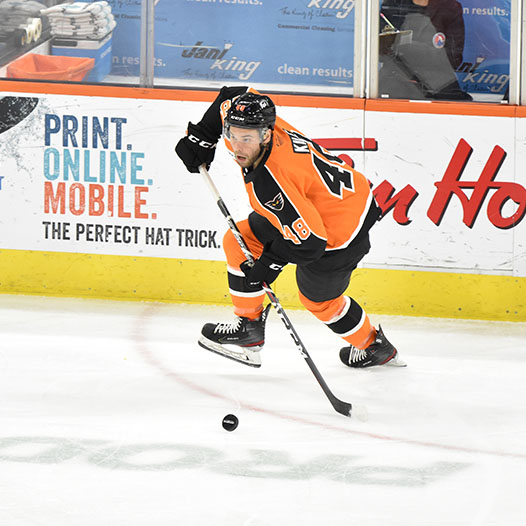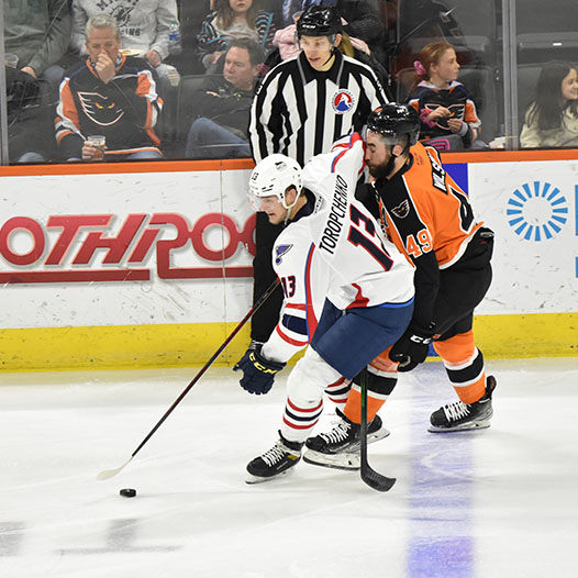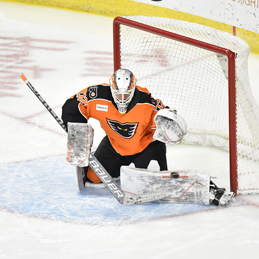 A relatively quiet first period saw little in the way of action for Springfield starting netminder Charlie Lindgren, who blocked the five Phantoms shots he faced in the opening 20 minutes. Things were slightly busier for Phantom netminder Kirill Ustimenko, who fended off 10 Thunderbird attempts, including a handful on Springfield’s lone first-period power play.