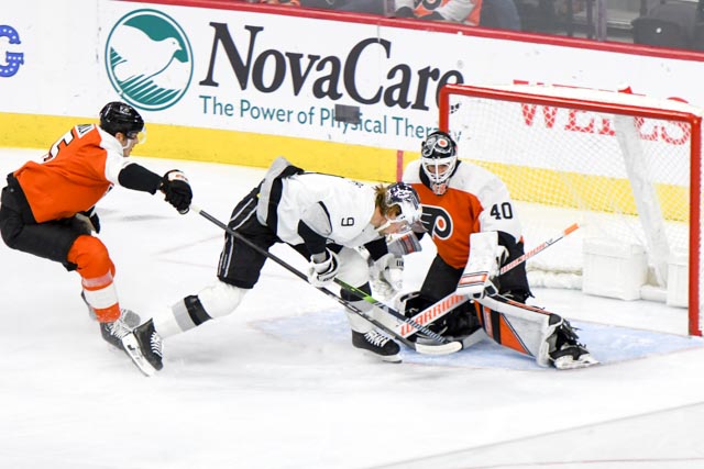 PHILADELPHIA – Five different strikers scored for the Los Angeles Kings on Saturday night in a 5-0 shelling of the Flyers.