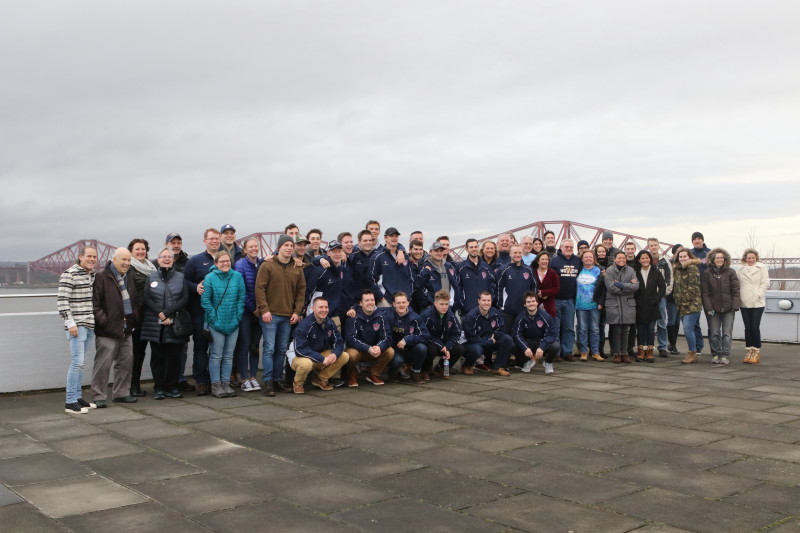 While the previous articles have featured the games and the players on the ice during the United Kingdom tour, this pictorial will focus on the surrounding people, places and activities from the trip. From a group photo at the Firth of Forth, the Kelpies and Stirling Castle on day two, to sightseeing in London on the last day, as well as Hogmanay and sightseeing in Edinburgh and restaurants where the traveling party gathered.