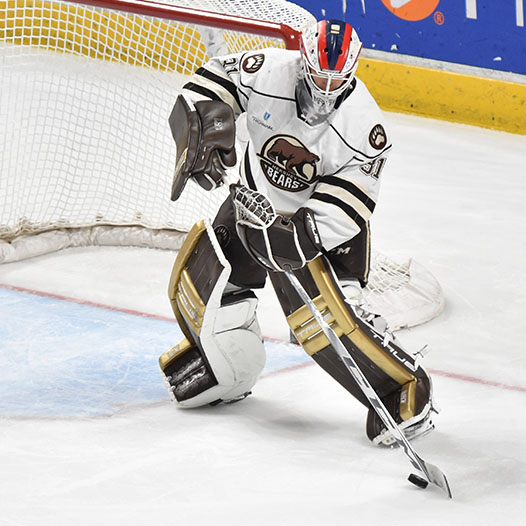 Still 2-0 into the final frame, the Chocolate and White scored thrice more to run away with a 5-0 decision. Joe Snively struck unassisted only 23 seconds into the stanza, and Jonsson-Fjallby completed his hat-trick with markers at 3:11 and 13:06. Garrett Pilon finished the night with three assists and Snively finished with one goal, two assists. Pheonix Copley stopped all 23 shots faced for his second shutout of the season. Final shot totals were 36-23 Hershey. The Bears finished 1-for-5 on the power play and 1-for-1 on the penalty kill.