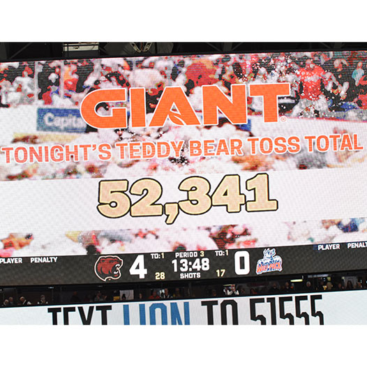 The Hershey Bears topped the Hartford Wolf Pack by a 5-0 margin on Saturday night at GIANT Center. Axel Jonsson-Fjallby recorded a hat-trick, including the game’s first goal to send 52,341 stuffed animals into orbit for the GIANT Teddy Bear Toss. All stuffed animals will be donated to over 25 local organizations. Both teams are slated to rematch tomorrow at GIANT Center at 3 P.M.