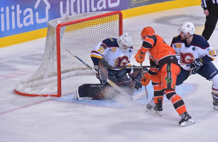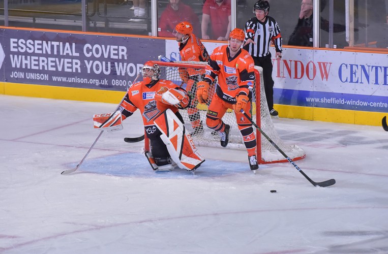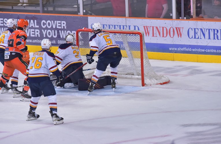The Flames had the better of the opening period and deservedly led by a goal after 20 minutes in Sheffield. A minute after the Steelers killed off an early minor penalty of Sam Jones, Bradley Lalonde shot through a crowd of players to put Guildford ahead at 5:20. The visitors were inches away from doubling their lead in the final seconds of the period, but for the out-stretched pad of Matt Greenfield denying Ben O’Connor.