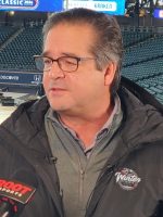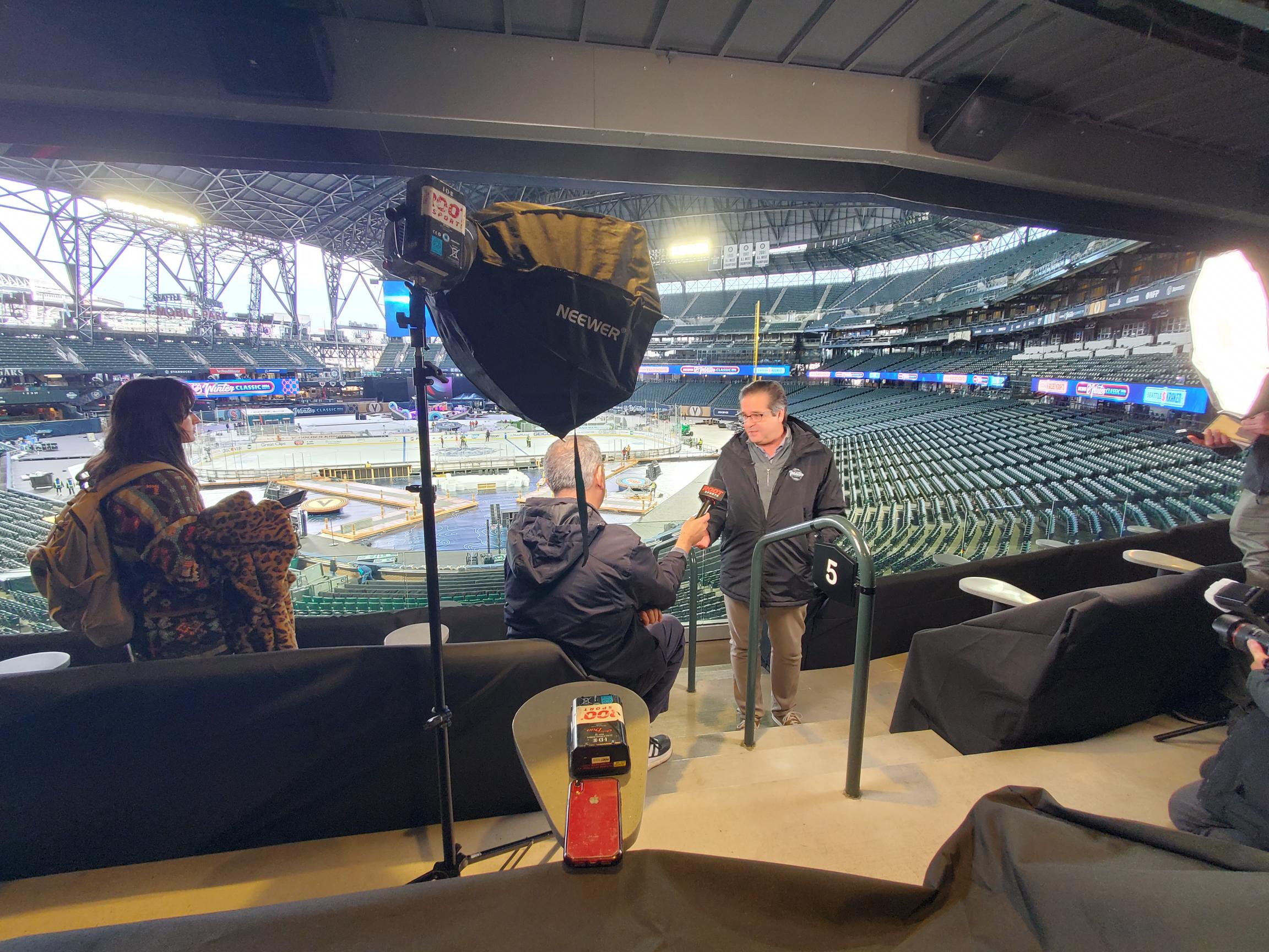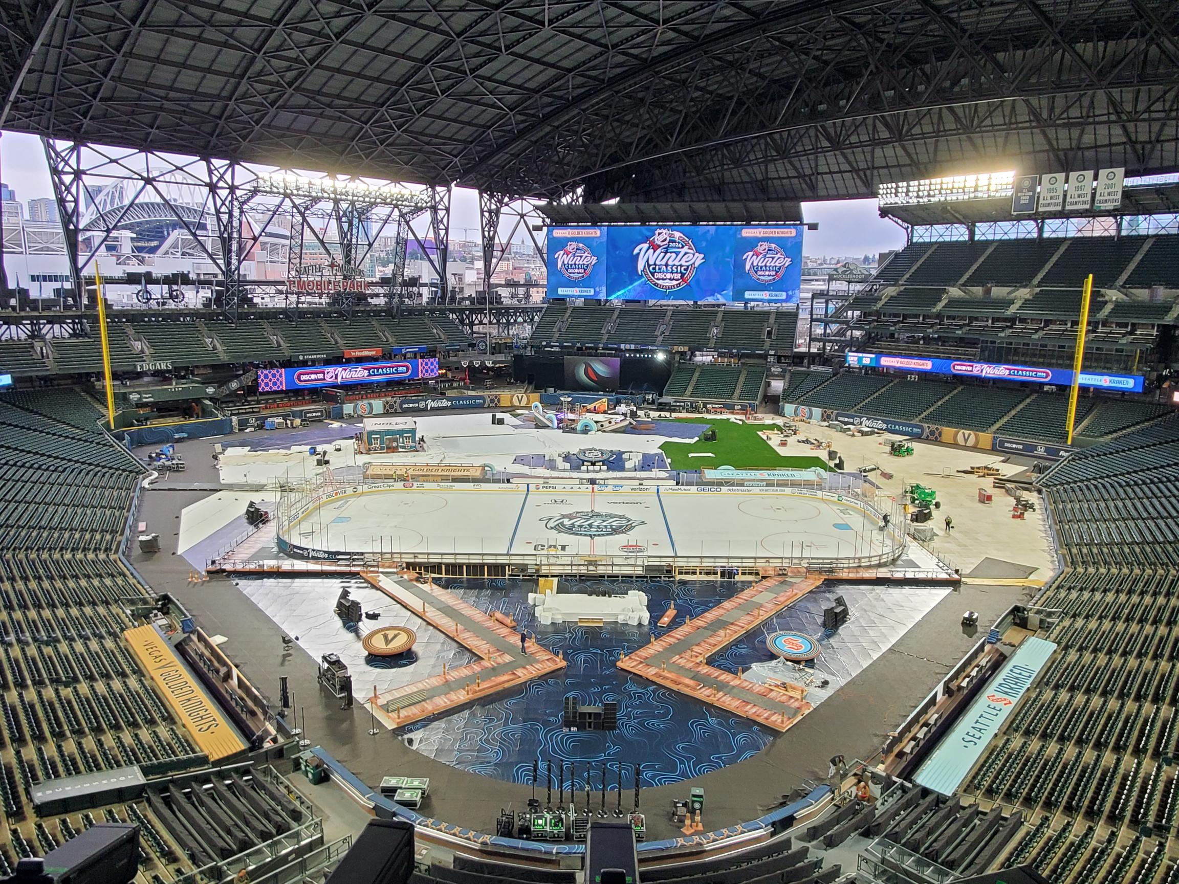 SEATTLE, WA – The media availability of NHL Senior Executive Vice President and Chief Content Officer Steve Mayer began in the lower box seat section behind home plate with a flurry of activity behind him. The emergence of a stage for the league’s spectacle mid-season event unfolding from an artist rendition to reality.