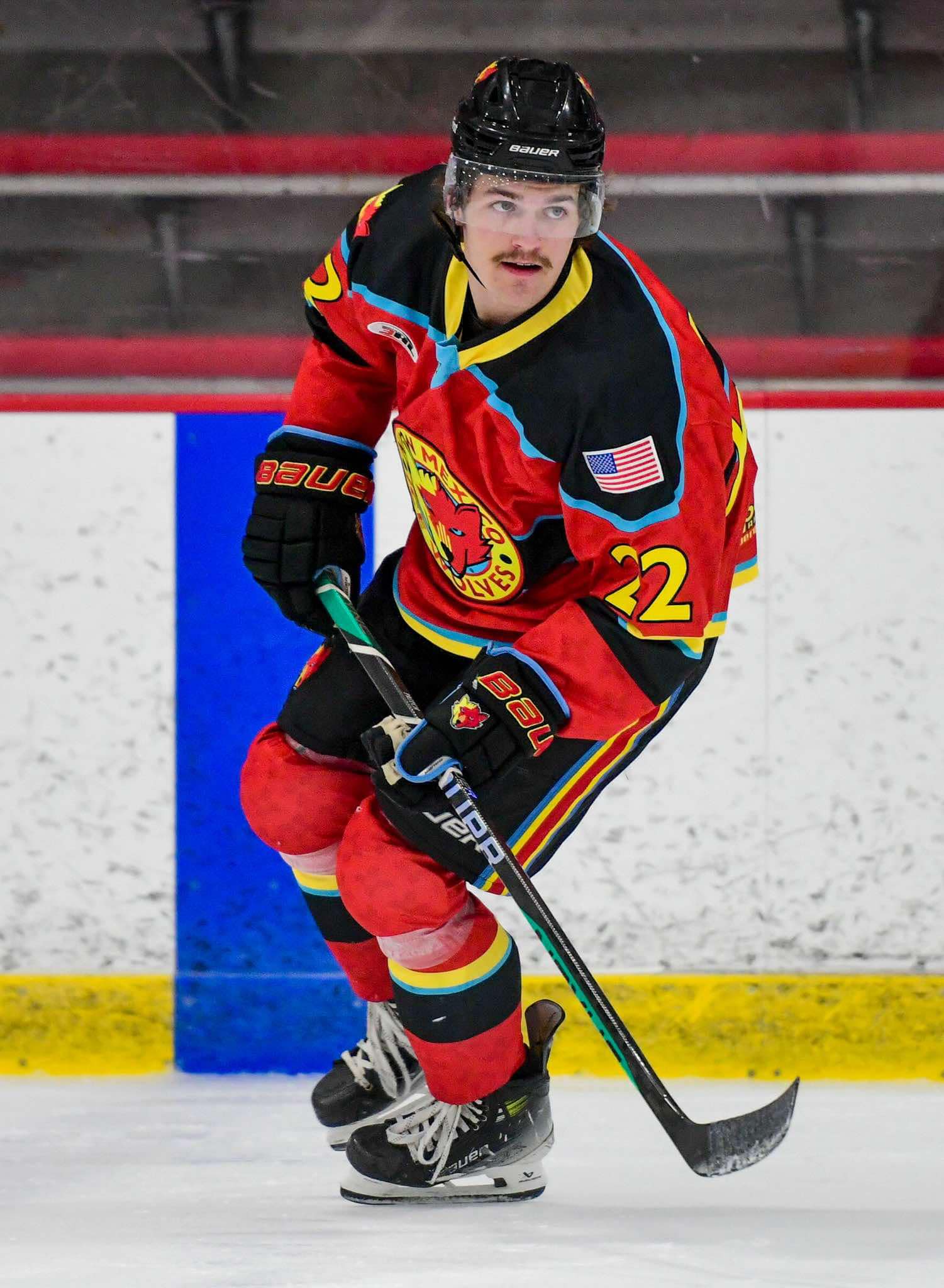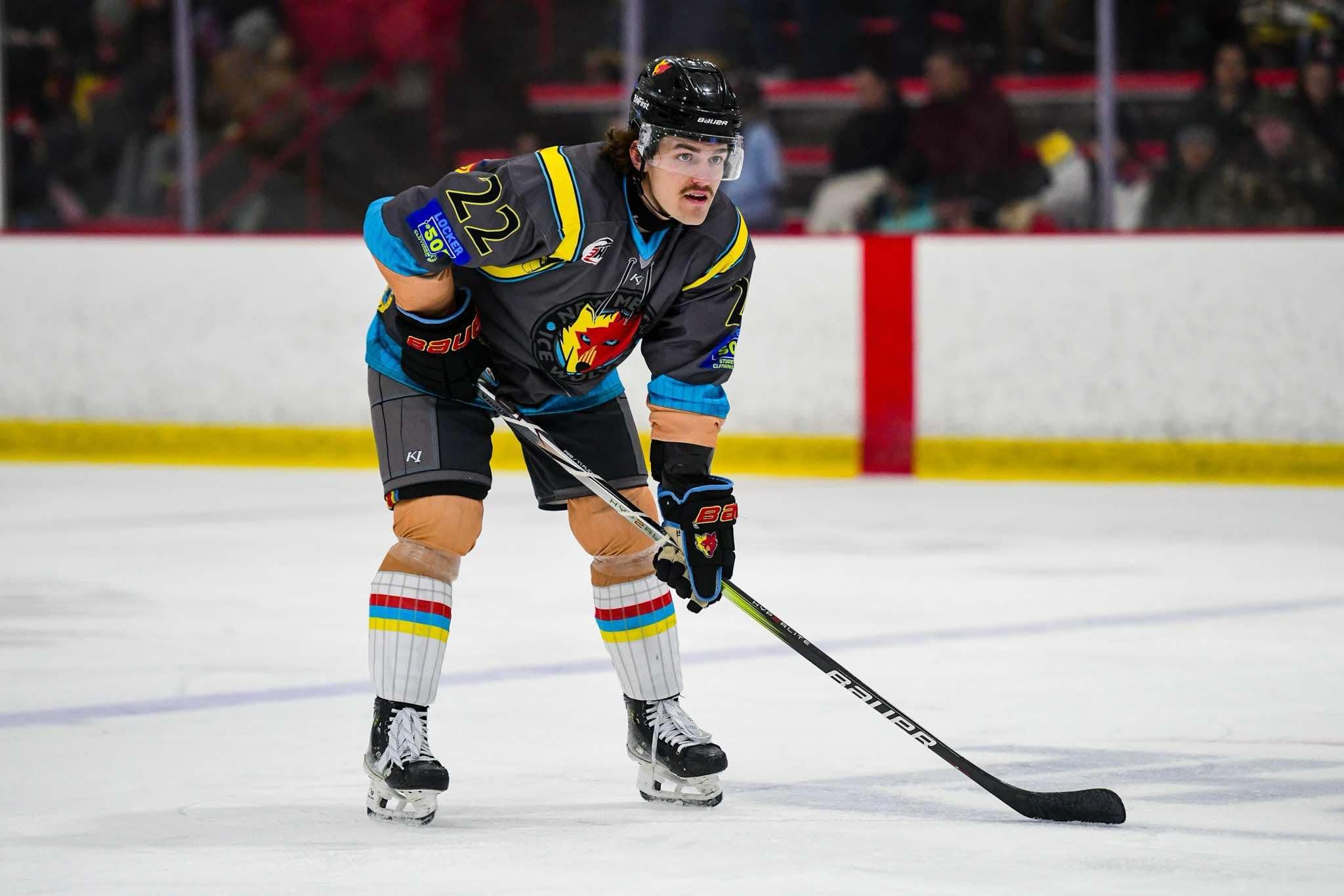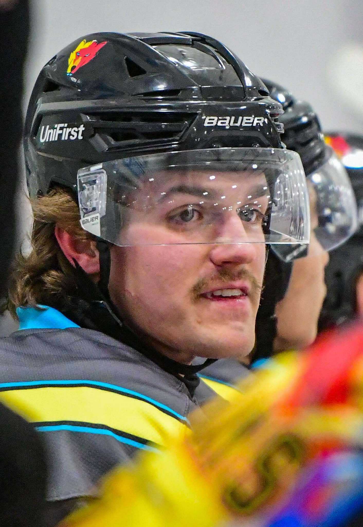 Kyle was acquired in a trade with the Texas Roadrunners. He made an immediate impact and quickly endeared himself to the fans and he says the feeling is mutual. “I loved both teams, but here everyone competes. We have four lines and everyone can roll. We all help each other and support each other. We love competing.” Mackintosh continued, “We didn’t have much of a fan base with the Roadrunners, so it’s really fun to come out here and see the squishy wolves tossed on the ice. The special jerseys and the school kids, they were very loud. I love it.”