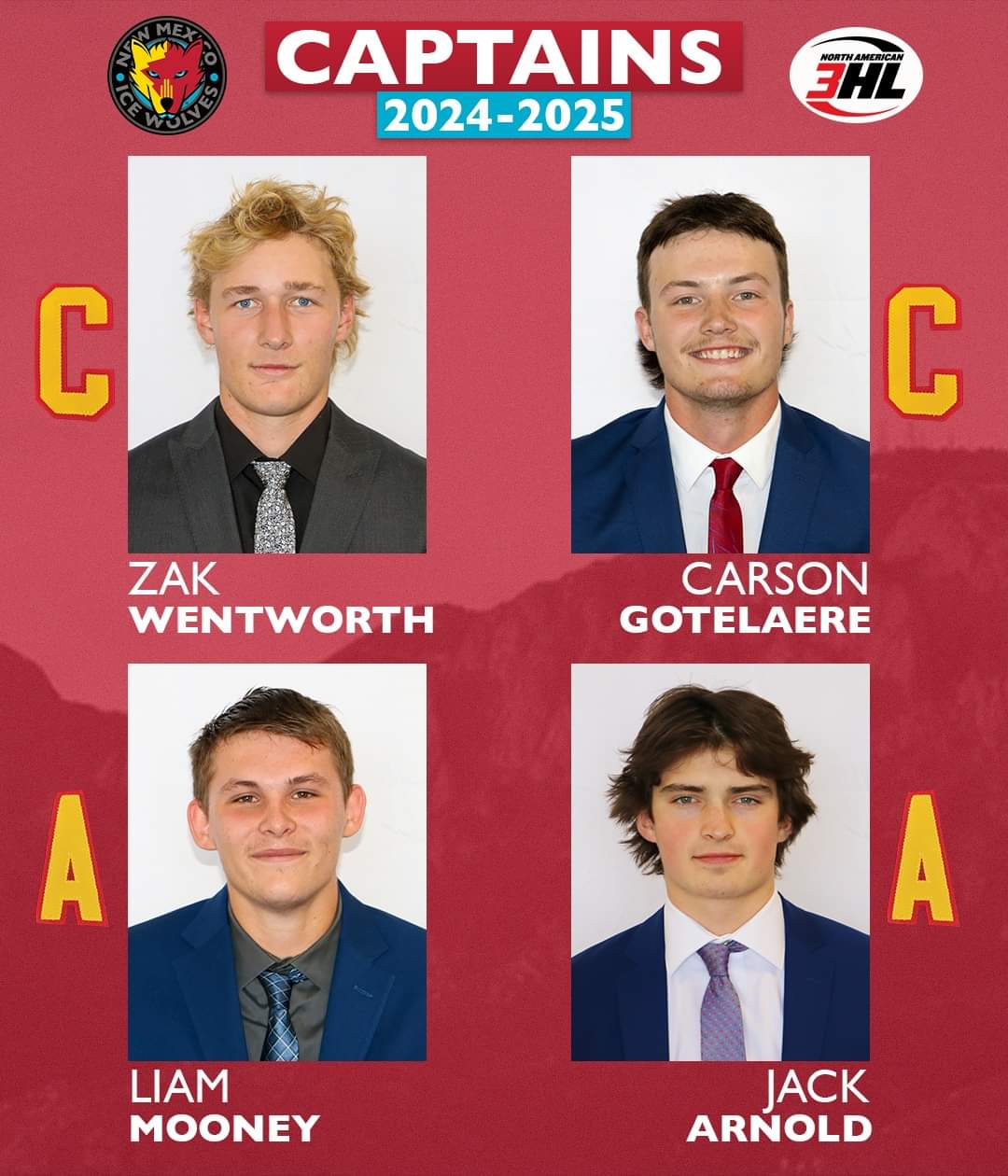 Speaking of leaders, the team announced their captains, Zak Wentworth and Carson Gotelaere will be Co-Captains, while Jack Arnold and Liam Mooney will be Assistant Captains. Banks said he left it up to the team, “Our players vote on the Captains. Zak Wentworth wore the ‘C’ with Spencer Lund last season so we named him Captain.” He said, “For the other guys they’re all veteran players, they’re 20 year olds, all looking to play college hockey and we feel like they’ve done a great job on the culture side. Not only continuing what we’ve established the last two years, but adding things. They know what it means to be an Ice Wolf.”