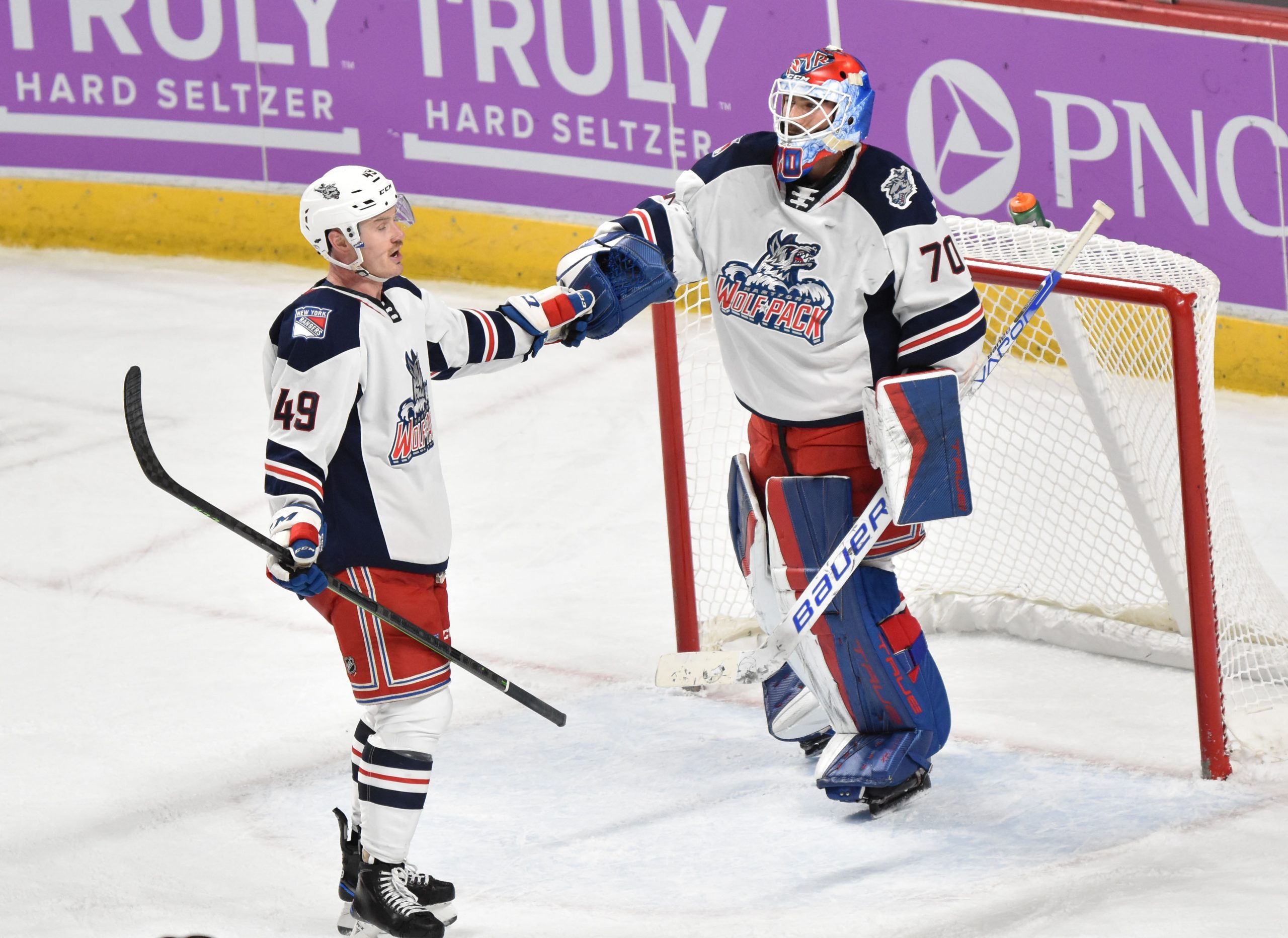 Emberson gave the Pack the lead back at 5:58, blasting home his first goal as a member of the Wolf Pack. Henriksson’s assist on the goal was his first point in the AHL.