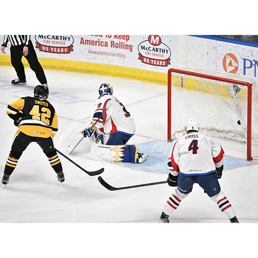 Just 2:23 later, Steven Santini let a slapper fly from the right point that eluded Nappier, bringing Springfield’s deficit to just a single goal at 4-3.