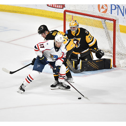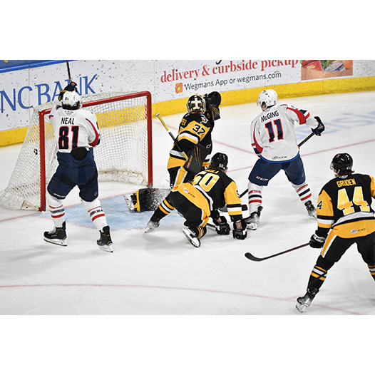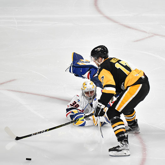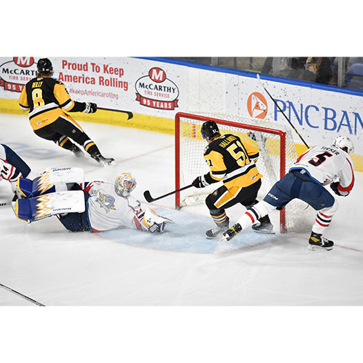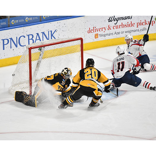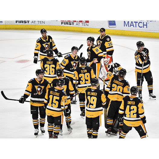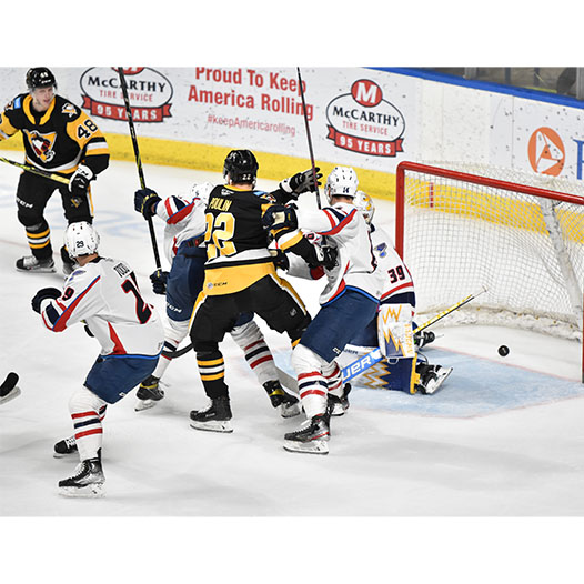 However, the Anas goal proved to be of little dismay for the Penguins, who rattled off three goals over the next 8:14 of game action following the Springfield power-play goal. First, after a misplay behind the net by the T-Birds defense, Valtteri Puustinen swiped the puck and found Filip Hallander in front of the goal for a one-timer that squeezed through Lindgren at 10:22.