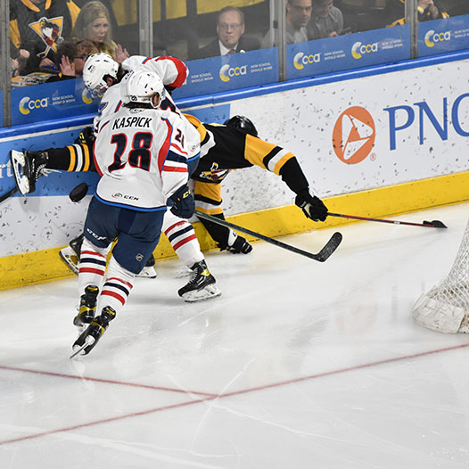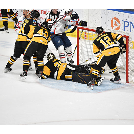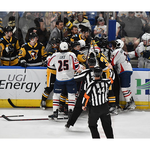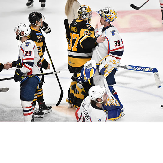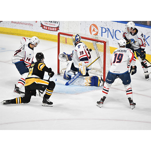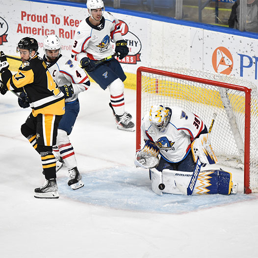 WILKES-BARRE, Pa. – The Springfield Thunderbirds erased a 4-1 first intermission deficit to stun the Wilkes-Barre/Scranton Penguins, 7-6, on Sunday night at the Mohegan Sun Arena at Casey Plaza. The win completed a three-game series sweep of the Penguins and advanced the Thunderbirds onto the Atlantic Division Finals.