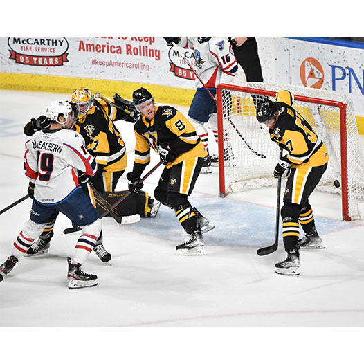 Sam Poulin was next to join the scoring party on a power play at 14:31, cracking the Penguins’ 0-for-8 power-play drought in the process. Lastly, Nathan Legare became the third different Penguin to pick up a goal and an assist in the first frame, tucking a backhander through Lindgren’s legs at 16:41 to make it 4-1 into the first intermission.