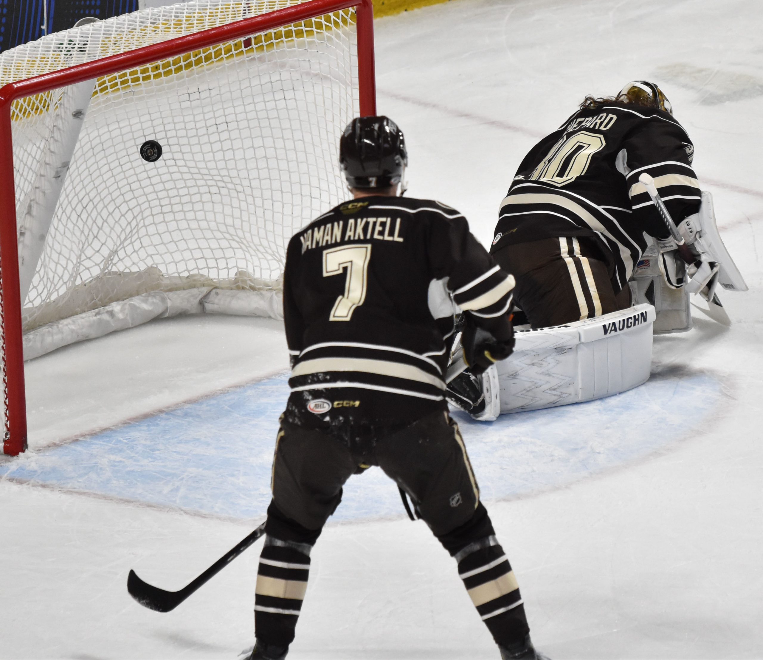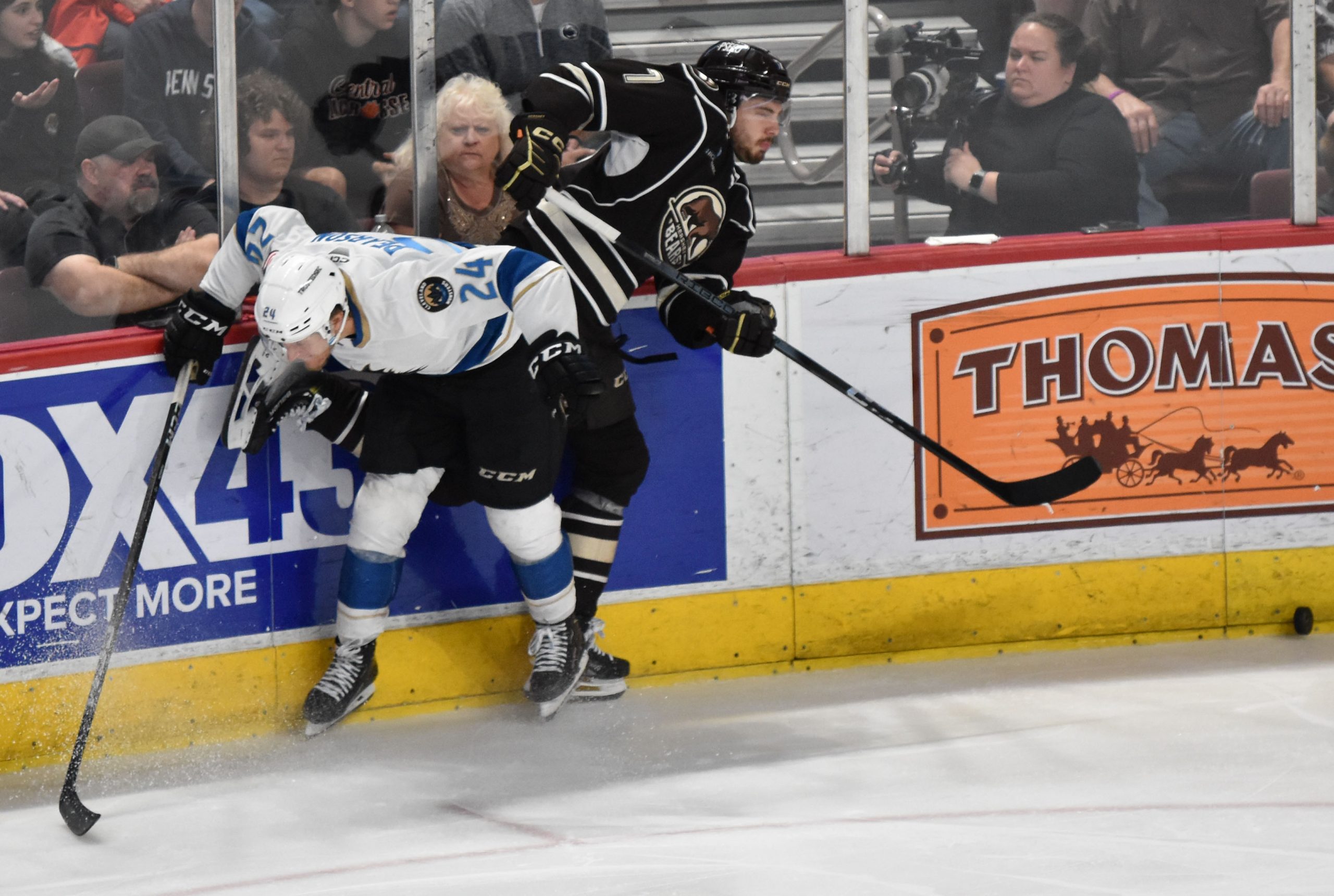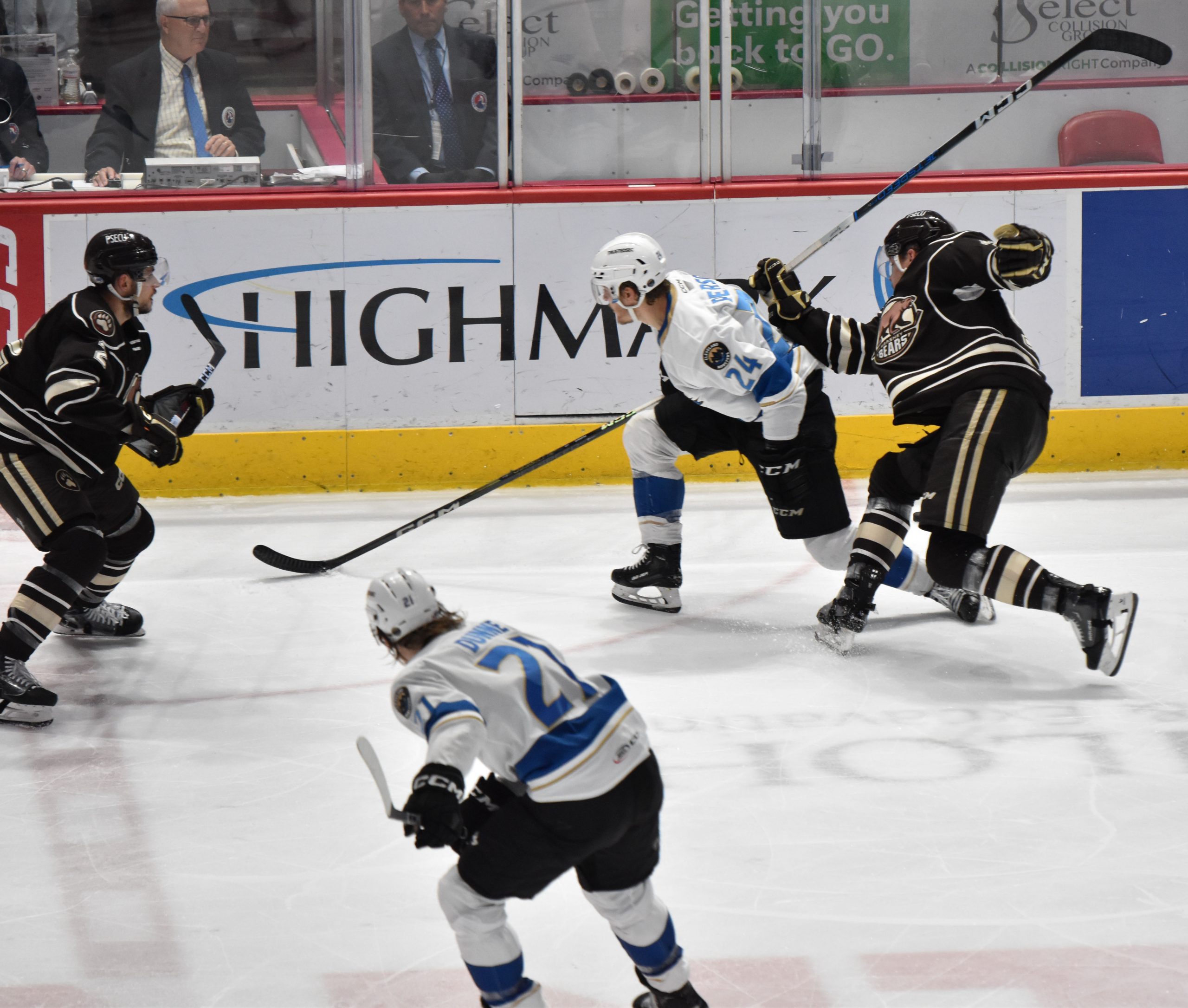 Owen Sillinger opened the scoring for the Monsters at 17:14 of the first period, and Henrik Rybinski answered for the Bears at 10:37 of the second.