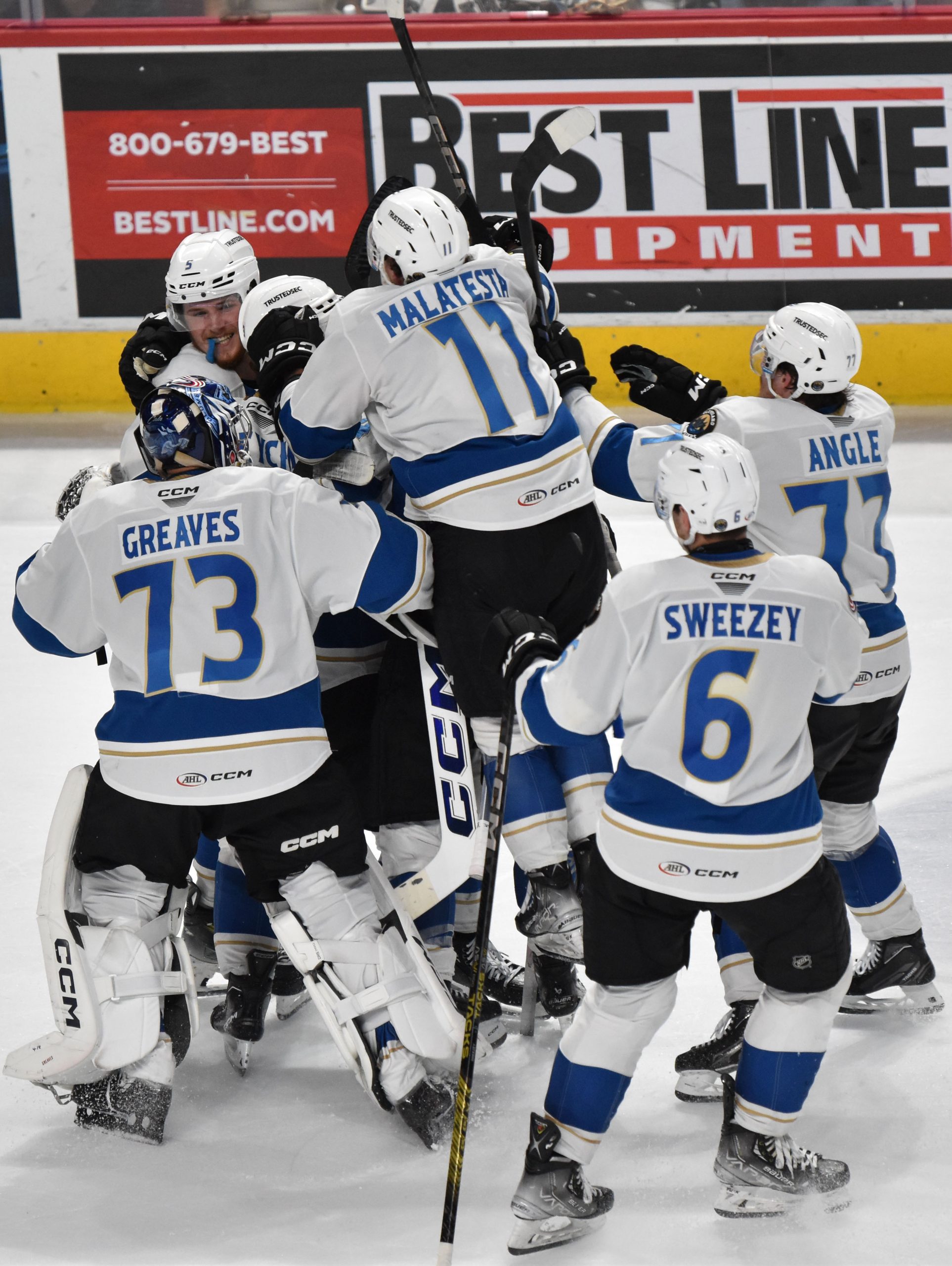 Jet Greaves stopped 29 shots in the win, while Shepard finished with 29 saves in dropping his first career playoff OT decision (6-1).