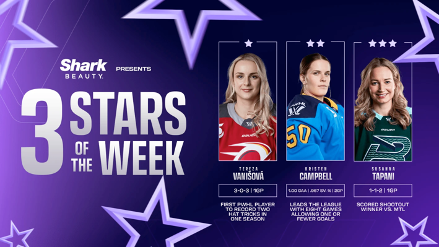 NEW YORK AND TORONTO – Ottawa Charge forward Tereza Vanišová, Toronto Sceptres goaltender Kristen Campbell and Boston Fleet forward Susanna Tapani have been named the Professional Women’s Hockey League (PWHL) 3 Stars of the Week presented by Shark Beauty Canada following games from Mar. 17-23.